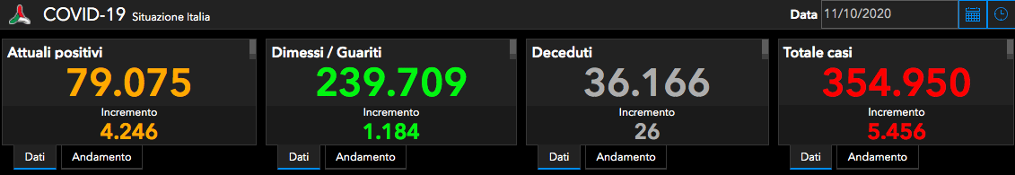 Il Ministero della Salute e la Protezione Civile hanno pubblicato il consueto bollettino sulla diffusione del Coronavirus in Italia aggiornato alla data di oggi, domenica 11 ottobre 2020.