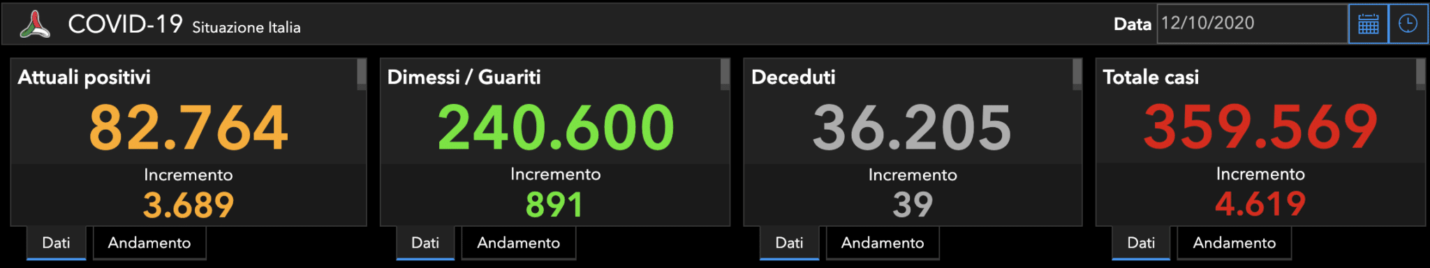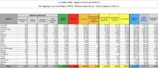 Il Ministero della Salute e la Protezione Civile hanno pubblicato il consueto bollettino sulla diffusione del Coronavirus in Italia aggiornato alla data di oggi, lunedì 12 ottobre 2020.
