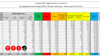 Il Ministero della Salute e la Protezione Civile hanno pubblicato il bollettino sulla diffusione del Coronavirus in Italia aggiornato alla data di oggi, lunedì 17 agosto 2020.