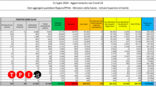 A partire dal 26 giugno i dati inerenti all’emergenza Coronavirus in Italia non vengono più diramati attraverso il bollettino diffuso sul sito Internet della Protezione Civile. I dati, infatti, sono ora disponibili sul sito del ministero della Salute. Questi i numeri del bollettino di oggi, martedì 21 luglio.
