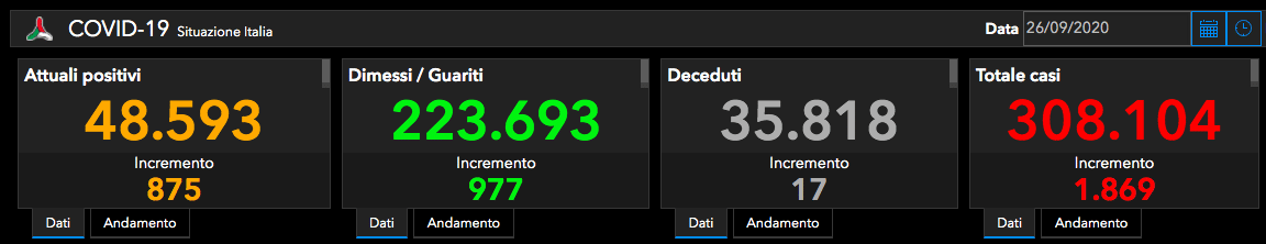 Coronavirus Italia, bollettino Protezione civile oggi 26 settembre: morti, contagi, guariti