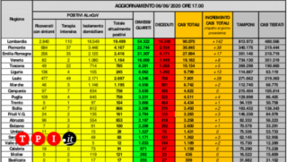 Dopo la decisione di sospendere definitivamente la consueta conferenza stampa delle 18, i dati inerenti all’emergenza Coronavirus in Italia vengono diramati attraverso un bollettino diffuso sul sito internet della Protezione Civile. Questi i numeri del bollettino di oggi, sabato 6 giugno.