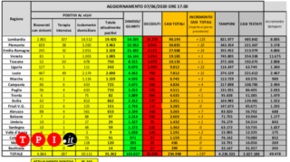 Oggi si registrano meno morti rispetto a ieri, 53 (ieri erano stati 72), mentre sono 759 i guariti, quasi in linea rispetto a ieri. Continua anche il decremento dei ricoverati in ospedale, -138 oggi, ieri il dato era di -299, e di coloro che necessitano di cure in terapia intensiva, che calano di ulteriori 6 unità (ieri il decremento era stato di -22). Sono 690, invece, le persone in meno che si trovano in isolamento domiciliare rispetto a ieri. Per quanto riguarda i tamponi, invece, oggi sono stati realizzati 49.478 test: in diminuzione rispetto ai 72.485 tamponi effettuati ieri e dei 65.028 dell’altro ieri.