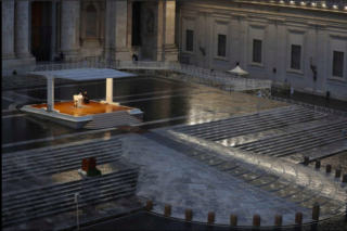 La celebrazione sul sagrato della Basilica di San Pietro in una Piazza completamente vuota