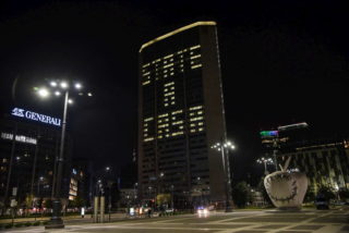 Coronavirus, a Milano il Pirellone si illumina con la scritta “State a casa”