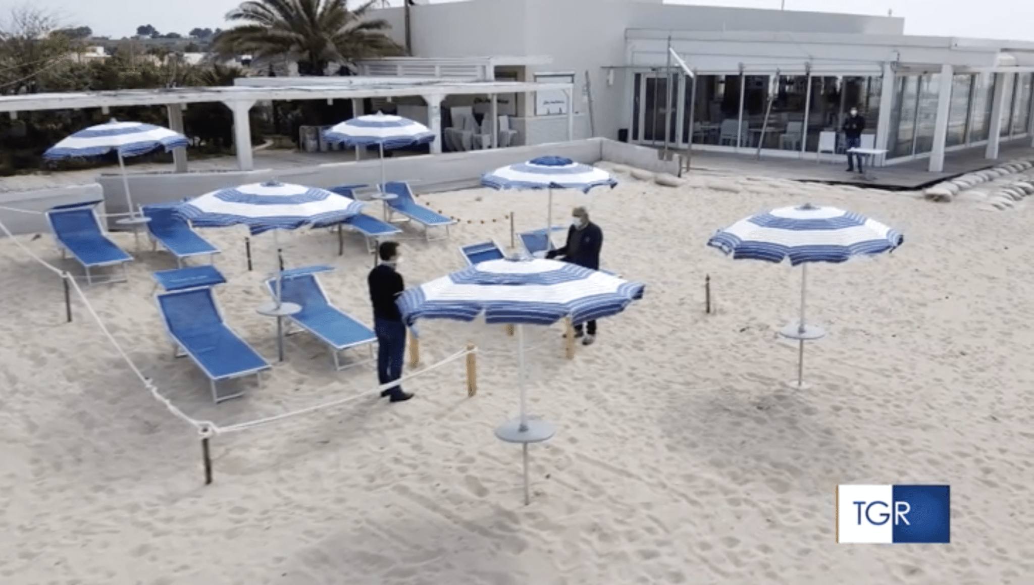 Prove tecniche d’estate a Porto Cesareo, in Salento, dove i gestori dello stabilimento Lido Bacino Grande hanno effettuato alcune prove per salvare la stagione balneare e permettere ai turisti di andare al mare, rispettando le norme di distanziamento sociale, obbligatorie a causa dell’epidemia di Coronavirus. Intervistato dal Tgr Puglia, uno dei balneari dello stabilimento di Porto Cesareo ha illustrato alcune delle prove effettuate in questi giorni, che prevedono spazi di 10 metri quadrati sulla sabbia, delimitati da picchetti e corde. Ogni spazio ha a disposizione un ombrellone e due lettini, distanti almeno un metro l’uno dall’altro, mentre tra le varie zone assegnate vi sono almeno 3 metri di distanza. A separare gli spazi con ombrelloni e sdraio è un corridoio centrale, utile per raggiungere il bagnasciuga, rispettando comunque le regole di distanziamento sociale.