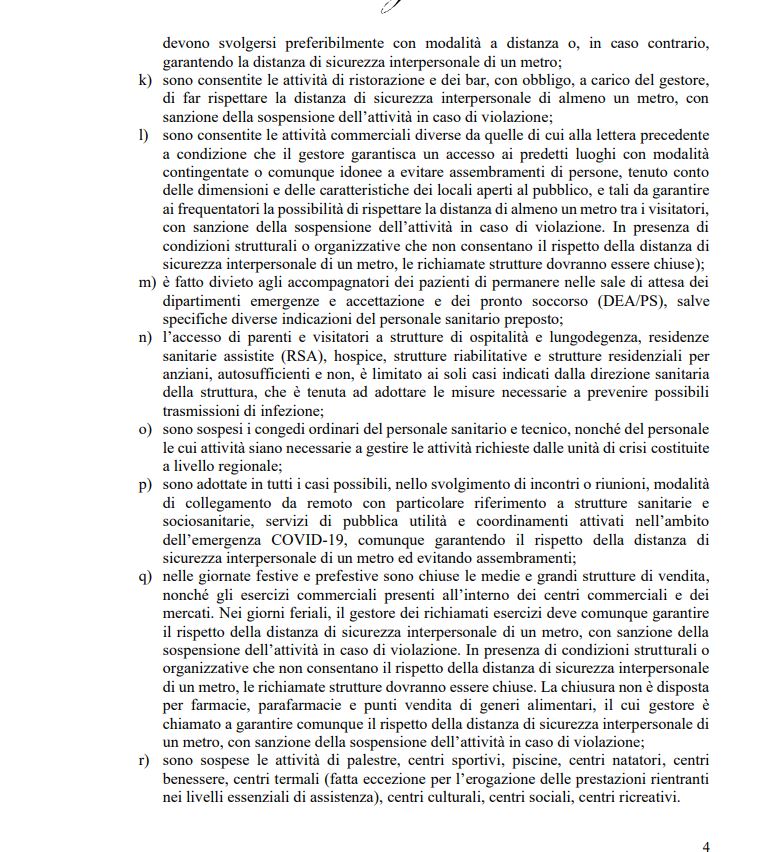 Le competizioni sportive all’aperto sono ammesse solo a porte chiuse. I centri commerciali dovranno essere chiusi ma solo nel week end. Chiusi invece i musei, centri culturali e le stazioni sciistiche. Scuole chiuse fino al 3 aprile in queste aree. Concorsi pubblici sospesi. Non ci saranno né matrimoni né funerali. Sospese anche le cerimonie civili e religiose, comprese quelle funebri.