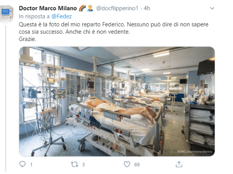 Un altro utente via Twitter ha commentato: “Una mia amica sana è morta, altri miei amici giovani hanno avuto il Covid e la raccontano come un’esperienza traumatica. Nella casa di riposo locale sono morti 24 anziani dove facevo volontariato”. Altri hanno persino pubblicato i video delle terapie intensive, durante la fase più difficile della pandemia. “Io a marzo ho preso il Covid e non ho visto nessuno in terapia intensiva in ospedale. Morivano direttamente vicino al letto mentre eravamo in corridoio perché non c’erano più stanze”, ha denunciato un altro utente.