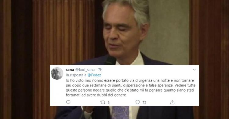 “Il Covid-19 esiste”, i parenti delle vittime rispondono ad Andrea Bocelli