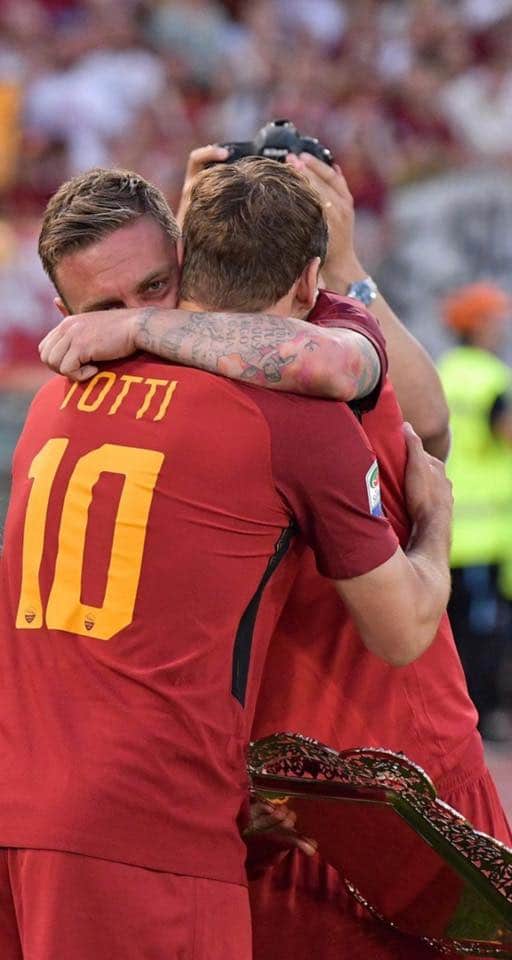 Con un futuro ancora tutto da decidere tra carriera manageriale nella società romana, attività di allenatore nei piani o possibile trasferimento all’estero De Rossi trova nelle parole di Totti un comune denominatore e una promessa: “Esistono i tifosi di calcio e poi esistono i tifosi della Roma! Torneremo grandi insieme!”