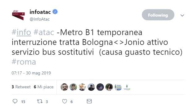Su Twitter, l’account ufficiale InfoAtac ha parlato di un non meglio precisato guasto tecnico, che ha obbligato l’azienda dei trasporti di Roma a chiudere la tratta.