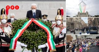 Il presidente della Repubblica Sergio Mattarella ha deposto una corona all’Altare della Patria in occasione del 75esimo anniversario della proclamazione della Repubblica Italiana che, per il secondo anno consecutivo, si celebra senza la tradizionale parata militare in via dei Fori imperiali a causa del Covid. Ad attendere il capo dello Stato c’erano però in piazza Venezia, dietro le transenne, centinaia di cittadini e turisti, che hanno assistito alla breve cerimonia che si è conclusa con lo spettacolare passaggio delle Frecce Tricolori.