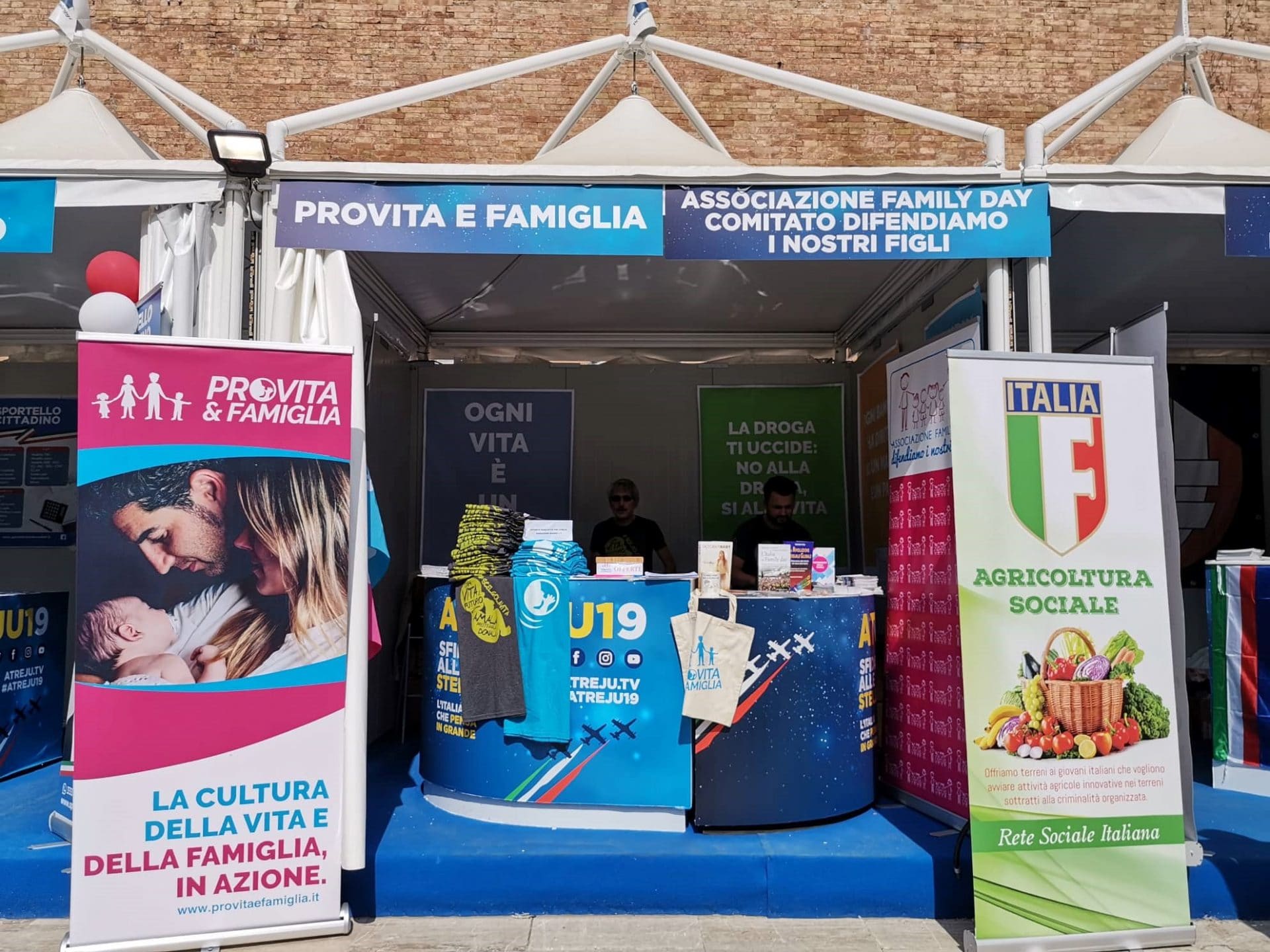 “Siamo stati invitati da Fratelli d’Italia per rappresentare le nostre istanze”, spiega a TPI lo standista del “Pro vita e famiglia e Family Day” Jacopo Coghe. Dunque è stata Giorgia Meloni stessa a volere i gadget pro vita tra i banchetti del festival della destra Atreju 2019 sull’Isola Tiberina a Roma.