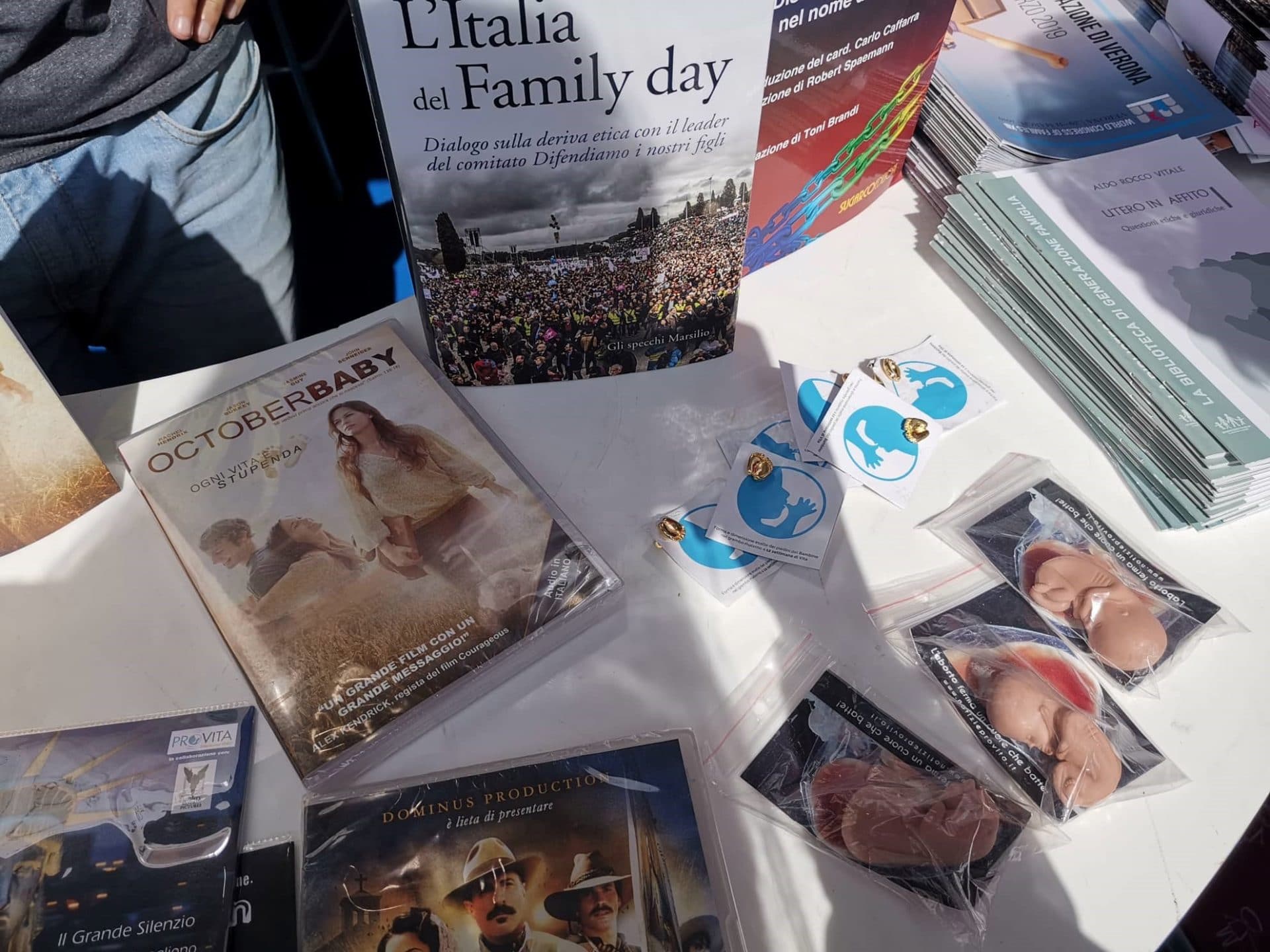 I feti di plastica erano già stati distribuiti in precedenza al dibattuto Congresso mondiale delle famiglie, la manifestazione che raduna antigay e antiabortisti d’Italiache si è tenuta a Verona dal 29 al 31 marzo 2019.