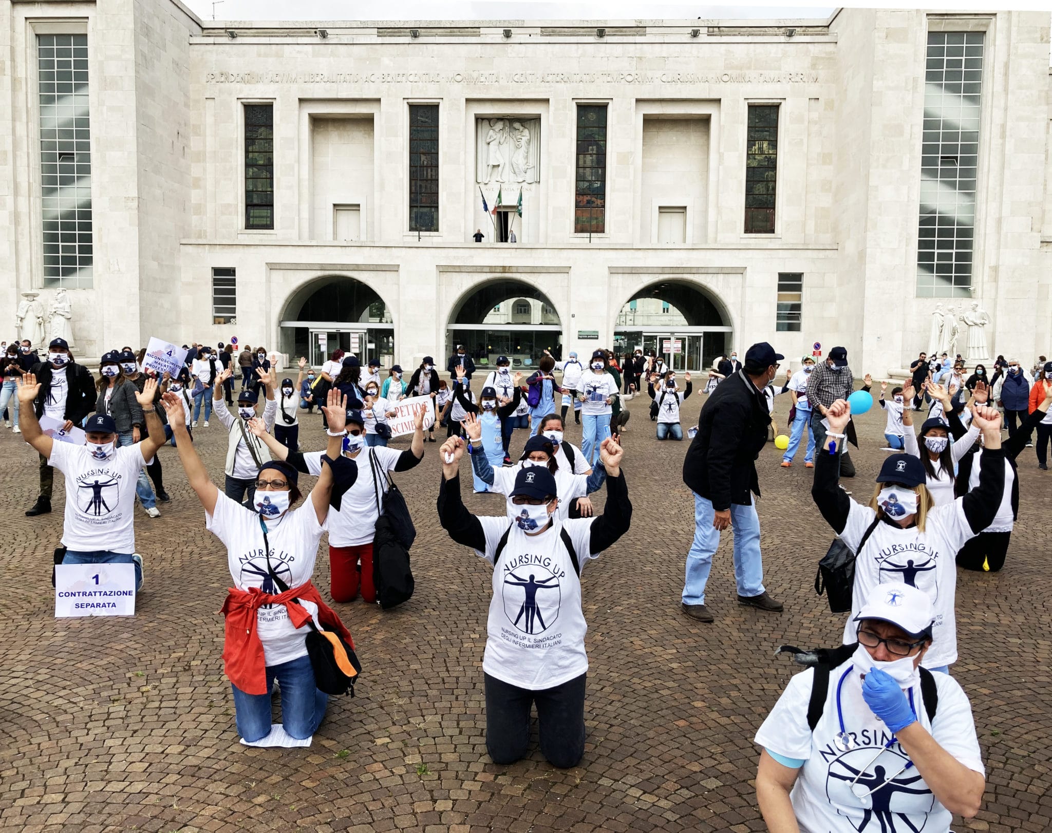 Nella mattinata di ieri, martedì 9 giugno 2200, oltre 150 infermieri hanno occupato il piazzale davanti all’ospedale Niguarda di Milano, per un flash mob annunciato nei giorni scorsi dal sindacato autonomo Nursing Up Lombardia, con l’obiettivo di chiedere assunzioni, dignità, contratto e retribuzioni adeguate per una professione che ha dimostrato tutta la sua essenzialità nel corso dell’emergenza Coronavirus. La manifestazione è stata accompagnata da slogan incentrati principalmente sul riconoscimento della professionalità di infermieri e personale sanitario, ma particolare rilevanza nel corso della mattinata ha avuto il momento in cui sono state lette le 10 richieste che il sindacato intende sottoporre al Governo.