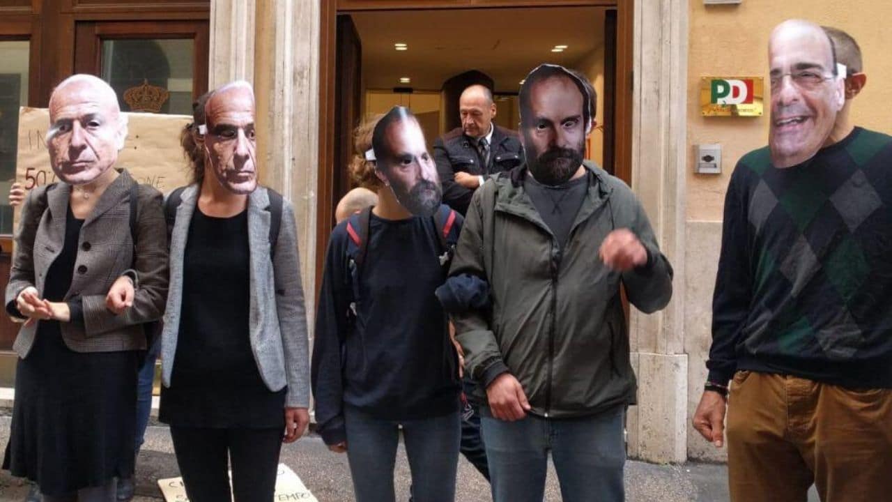 Un gruppo di attivisti della rete “Energie in movimento” oggi 5 novembre ha messo in atto un flash mob di protesta davanti alla sede del Partito Democratico a Roma. I dimostranti hanno indossato le maschere di alcuni politici del Pd cercando di mostrare in maniera scenica quella che loro ritengono un’ “ipocrisia” dei dem sulle politiche migratorie. Durante il blitz ogni attivista ha pronunciato ad alta voce alcune citazioni dei politici del Pd favorevoli agli accordi con la Libia per la gestione dei migranti.