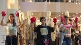 Una protesta pacifica per denunciare l'alto costo ambientale dei vestiti a basso prezzo