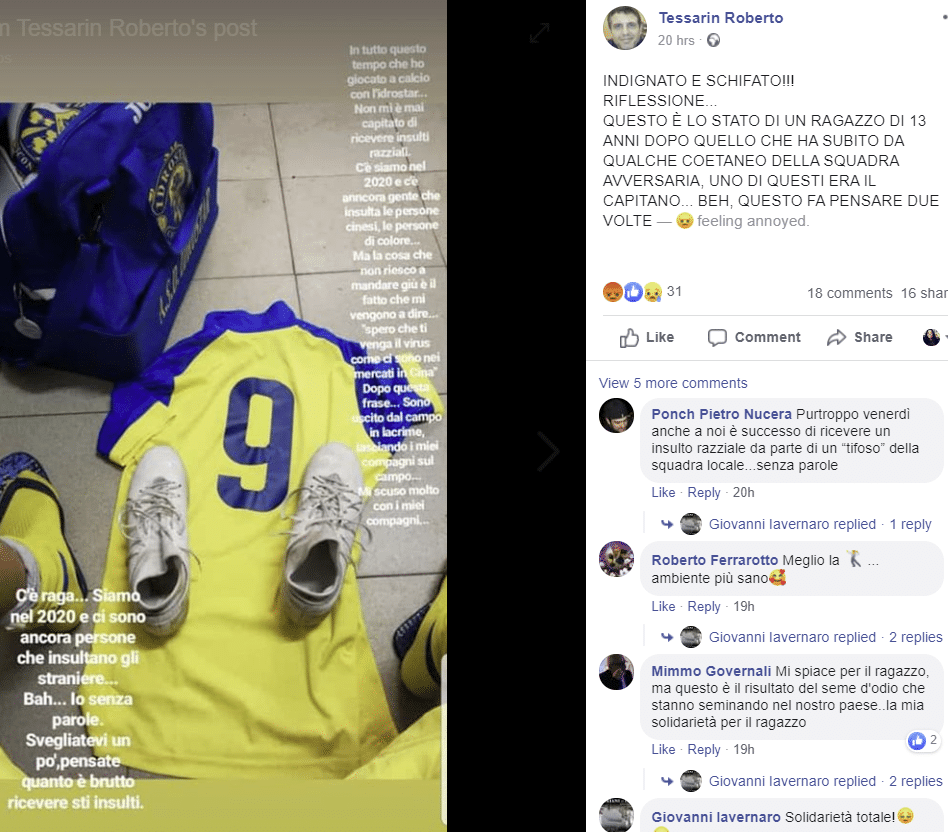 “In tutto questo tempo che ho giocato con l’Idrostar non mi era mai capitato di ricevere insulti razziali. Siamo nel 2020 e ancora c’è gente che insulta le persone cinesi, le persone di colore…”, scrive il ragazzino.