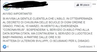 Dopo la decisione del governo di chiudere le scuole fino al 15 marzo in tutta Italia a causa dell’emergenza coronavirus, online sono stati pubblicati diversi annunci di ludoteche che hanno deciso di rimanere aperte nonostante il divieto.