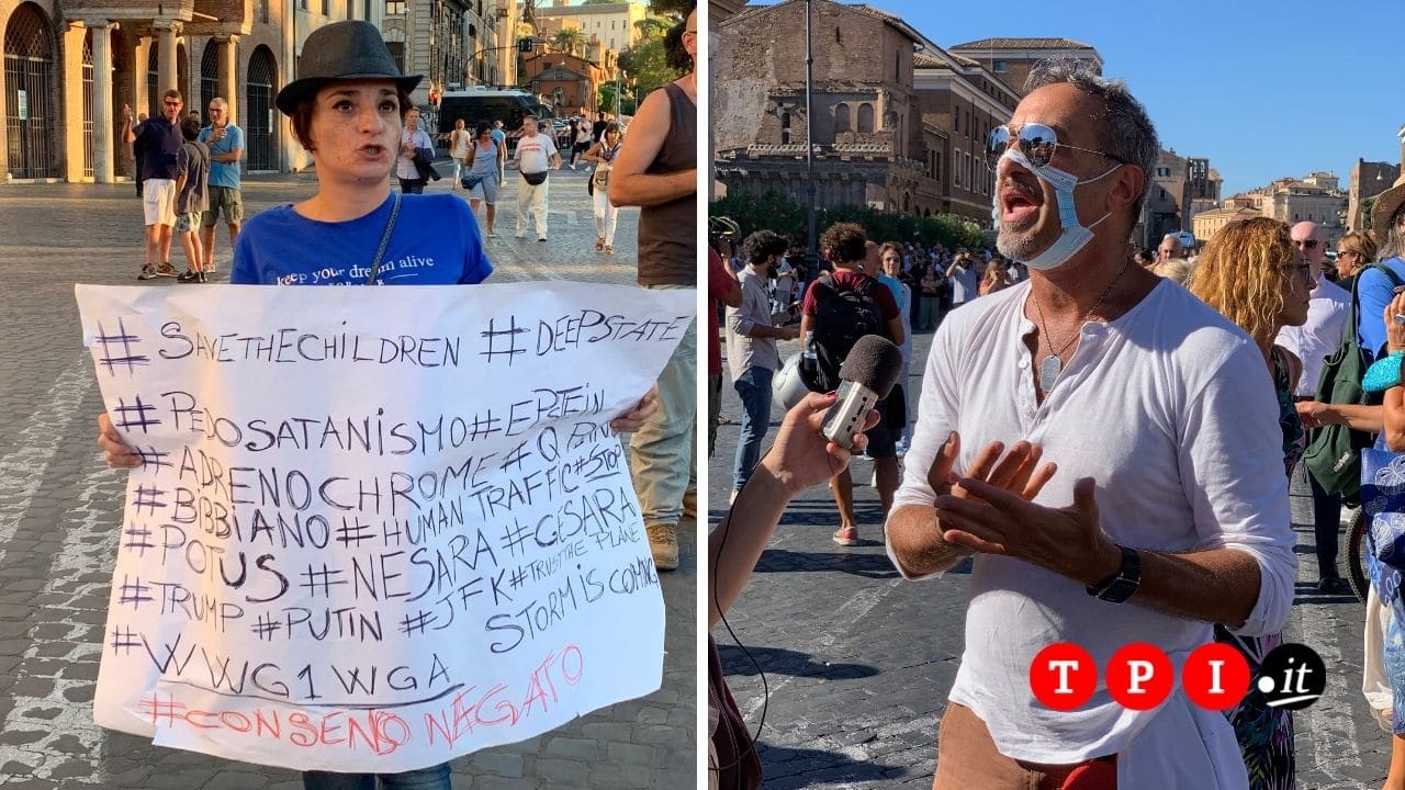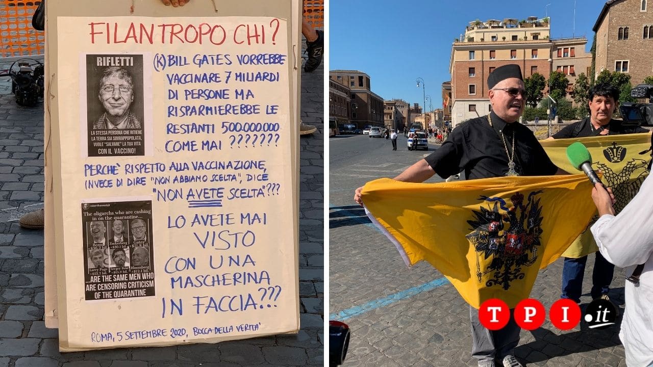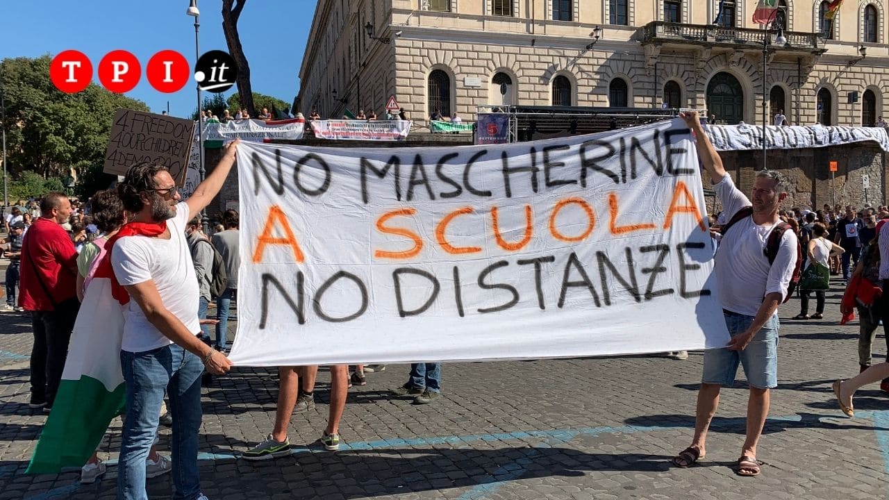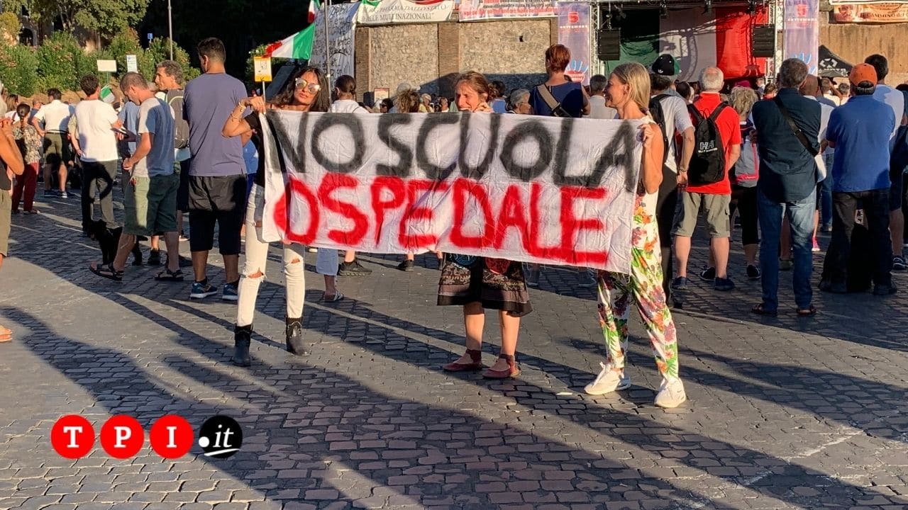 Negazionisti del Covid, No Vax, gilet Arancioni e movimento dei Forconi: c’era di tutto oggi, sabato 5 settembre 2020, a Roma nella manifestazione contro “la dittatura sanitaria” che si è tenuta in Piazza della Bocca della Verità. Al corteo hanno partecipato all’incirca 1000 persone al grido di “libertà” e “giù le mani dei bambini”. Assenti alcuni dei volti noti che erano stati accostati inizialmente alla manifestazione, dal cantante Povia al critico d’arte nonché deputato Vittorio Sgarbi sino al leader dei gilet Arancioni, il generale Pappalardo. Diversi gli slogan contro Nicola Zingaretti, che aveva attaccato duramente la manifestazione, così come per il sindaco di Roma Virginia Raggi. Non sono mancate le critiche neanche all’opposizione, colpevole, secondo la piazza, di non aver contrastato la “dittatura sanitaria” imposta dal governo Conte.