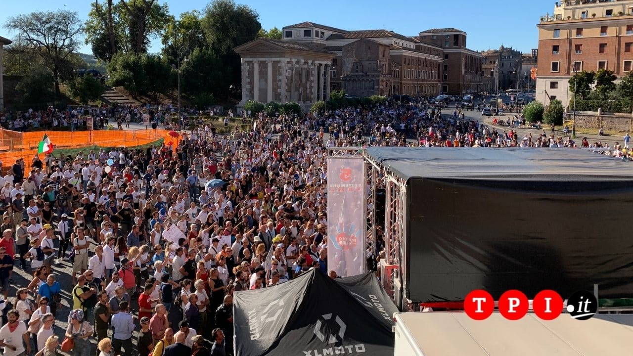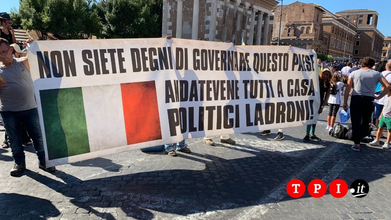Nel corso della manifestazione non sono mancati i fischi allo stesso premier, al presidente della Repubblica Sergio Mattarella, a Mario Draghi, a Soros e Bill Gates. Applausi, invece, per il leader russo Vladimir Putin e il presidente Usa Donald Trump. Sotto il palco allestito alla sinistra della Bocca della Verità si è creato un vero e proprio assembramento di persone, la maggior parte delle quali senza mascherina, in barba a qualsiasi disposizione anti-Coronavirus. Tuttavia, diversi manifestanti indossavano il dispositivo di protezione, a dimostrazione del fatto che la piazza era anche piuttosto eterogenea.