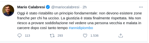 Sette ex terroristi, accusati in Italia di atti commessi negli anni ’70 e ’80, sono stati arrestati questa mattina in Francia, su richiesta dell’Italia. Altri tre sono ricercati nell’ambito dell’operazione “Ombre rosse”. Subito è arrivato il commento di Mario Calbresi, figlio del commissario ucciso Luigi Calabresi e ex direttore di Repubblica: “Oggi è stato ristabilito un principio fondamentale: non devono esistere zone franche per chi ha ucciso. La giustizia è stata finalmente rispettata. Ma non riesco a provare soddisfazione nel vedere una persona vecchia e malata in carcere dopo così tanto tempo #annidipiombo”, ha scritto in un tweet.