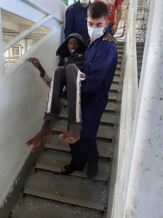 C’è un uomo scheletrico dal volto terrorizzato, in braccio a un marinaio in tuta blu che indossa la mascherina. È questa la foto simbolo scattata a bordo della nave Talia che mostra la condizione di una persona così provata dai giorni alla deriva senza cibo né acqua da non riuscire neanche a scendere le scalette di un ponte, e il dramma dei migranti in queste ore e in questi giorni, in un’epoca post-Coronavirus.