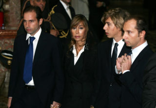 Daniela Bongiorno con i figli da sin Nicolò, Leonardo e Michele arrivano in duomo per il funerale di Mike Bongiorno. Credit: MATTEO BAZZI / ANSA