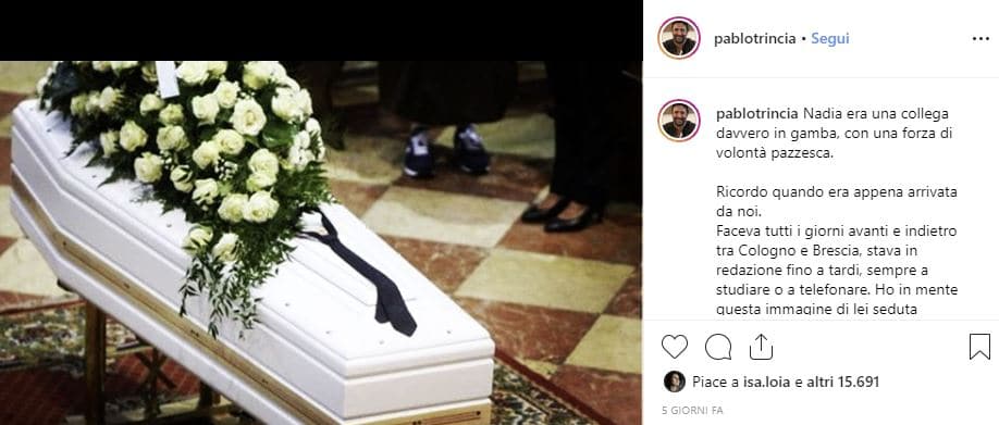 Martedì 20 agosto si sono celebrati a Cerveno, in provincia di Brescia, i funerali della nonna di Nadia Toffa, Maria Cocchi, e il giornalista de Le Iene Pablo Trincia ha commentato sui social l’accaduto.
