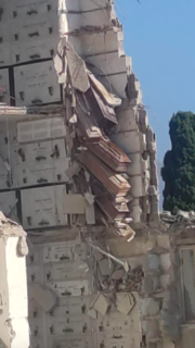 Il nuovo crollo ha interessato una congrega di quattro piani posta a monte del cimitero di Poggioreale, ben distante dall’area interessata dal precedente crollo di inizio anno. La costruzione si trova accanto al nuovo crematorio. Numerose le bare, almeno una decina, che con il cedimento del manufatto si trovano ora in un equilibrio precario, così come sono diverse le salme rese visibili e prive di ogni protezione. Sul posto è giunto l’assessore del Comune di Napoli al Verde con delega ai Cimiteri Vincenzo Santagada.