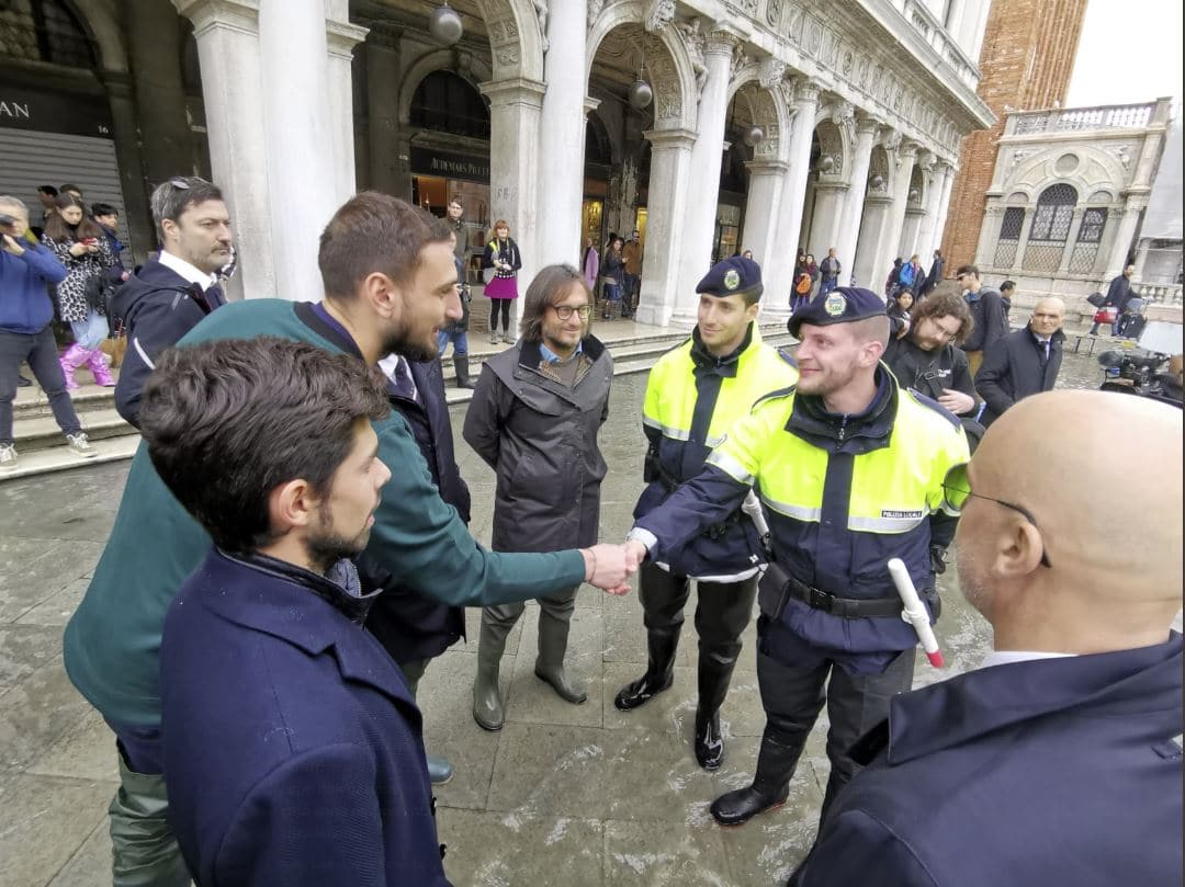 Una delegazione della nazionale di calcio italiana dopo la vittoria contro la Bosnia si è recata in visita a Venezia per far sentire la propria vicinanza agli abitanti della città. I giocatori sono arrivati di primo mattino: presenti il capo-delegazione Gianluca Vialli, il portiere Gigio Donnarumma e il presidente della Figc Gabriele Gravina, che hanno camminato per le strade allagate del centro cercando di dare conforto a tutti i volontari e alle forze della protezione civile che in queste ore stanno cercando di arginare i danni provocati dall’acqua alta.
