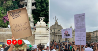 No Green Pass, nuova manifestazione a Roma: insulti e fischi contro Draghi e Burioni