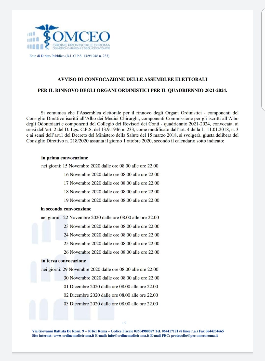 Nel testo della convocazione delle assemblee elettorali per il quadriennio 2021-2024 si legge chiaramente che il tutto si svolgerà “presso la sede dell’Ordine, Via Giovanni Battista De Rossi 9, 00161 ROMA”. Di seguito il documento ufficiale pubblicato sul sito dell’ordine: