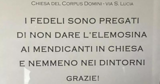 Padova, in chiesa appare il cartello: “Non date l’elemosina ai mendicanti”