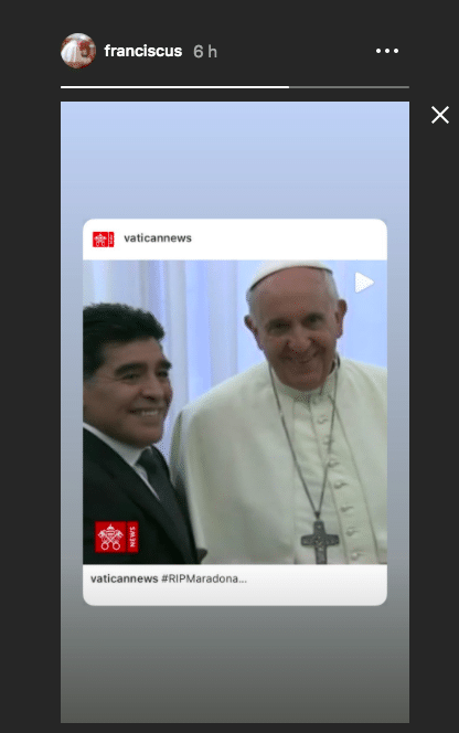 Papa Francesco dedica una storia a Diego Armando Maradona su Instagram