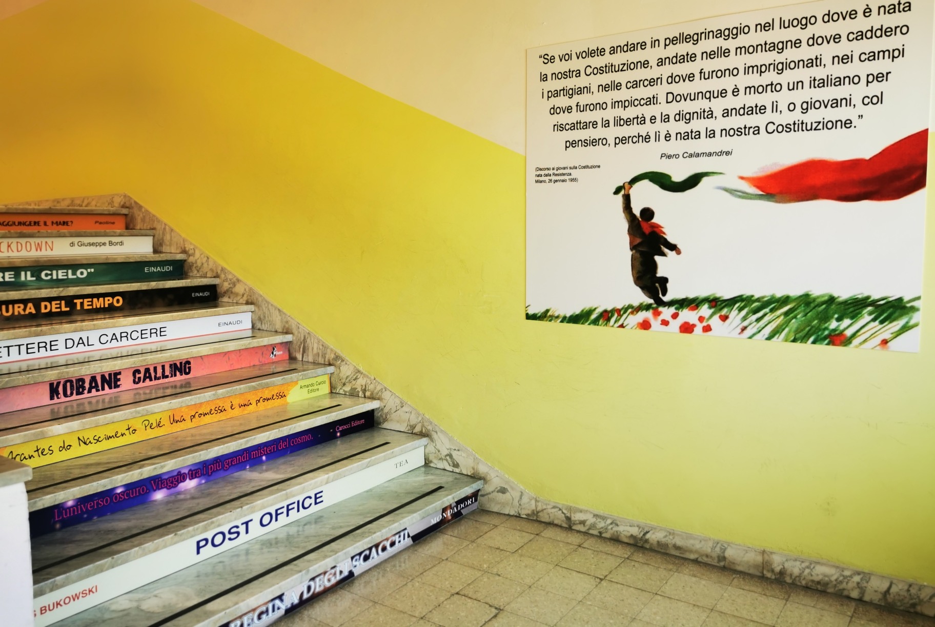 “Ad affiancare gli scalini c’é il discorso ai giovani sulla Costituzione, di Calamandrei in occasione del 25 aprile, I versi poetici di De André, il monito ai giovani della senatrice a vita Liliana Segre, Malala Yousafzai, Greta Thunberg, Rita Levi Montalcini, Frida Kahlo, Dostoevskij, Gramsci, Pasolini, Sepúlveda, Merini, Dante e molti altri – aggiunge l’Assessore – Oggi più che mai abbiamo bisogno di speranza e bellezza. Non c’è posto migliore per appassionare i ragazzi e i bambini alla lettura per un futuro volto all’integrazione. I libri ci danno la forza di resistere e smuovono gli animi per formare una coscienza critica, perché tutto quello che è stato piantato in passato, venga colto e continui a fiorire”, conclude Palone.