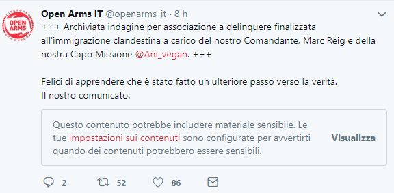 Il 14 maggio dalla procura di Catania era arrivata la richiesto di archiviazione per il comandante Marc Reig Creus e per il capo missione Ana Isabel Montes Mier della nave Open Arms.
