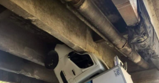Ragusa, camion rimane incastrato verticalmente sotto un ponte: le incredibili immagini