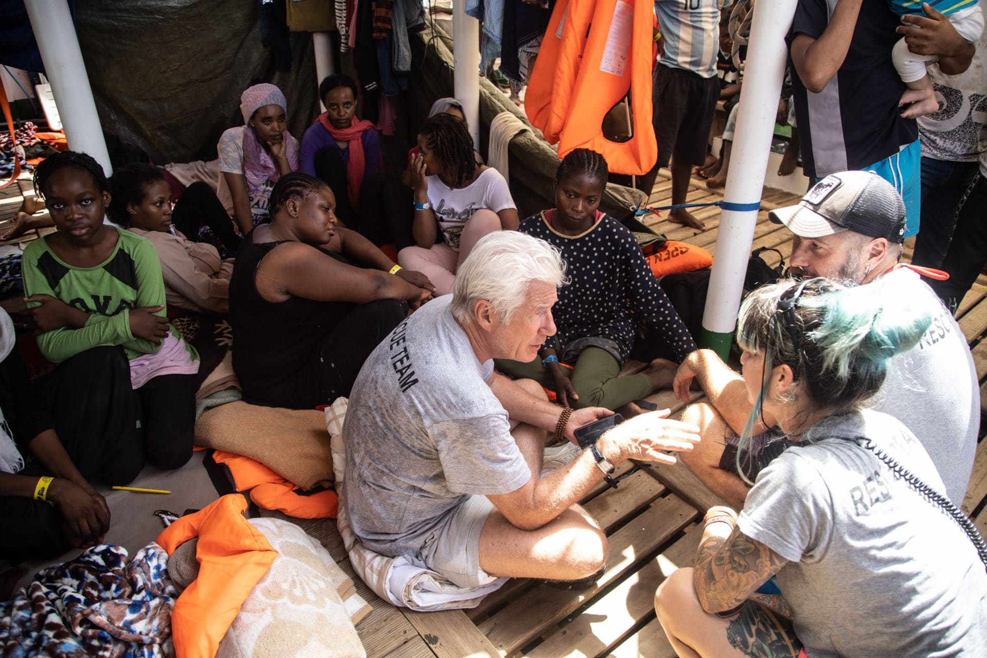Quello che Richard Gere ha trovato a bordo è stata una comunità, nonostante i giorni trascorsi insieme siano tanti e il rumore del motore e il caldo non aiutino la permanenza sulla nave. Ci sono alcuni bambini piccoli tra loro Moussa e Uma, due gemellini di 9 mesi, un maschietto e una femminuccia, che a rotazione vengono fatti giocare da tutti, nessuno escluso. I genitori sono molto presenti però tutti gli altri alleggeriscono il loro carico e giocano con loro.