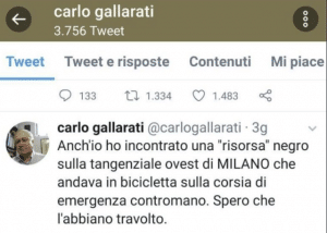 In un’intervista rilasciata a La Provincia Pavese, Gallarati, che dopo le segnalazioni ha oscurato il suo profilo Twitter, si era difeso: “Sono stato insegnante 35 anni anche in una scuola serale, con tanti stranieri, non ho mai avuto problemi con loro. Su Twitter scrivo come cittadino libero. Chi mi conosce sa che sono un bravo insegnante”.