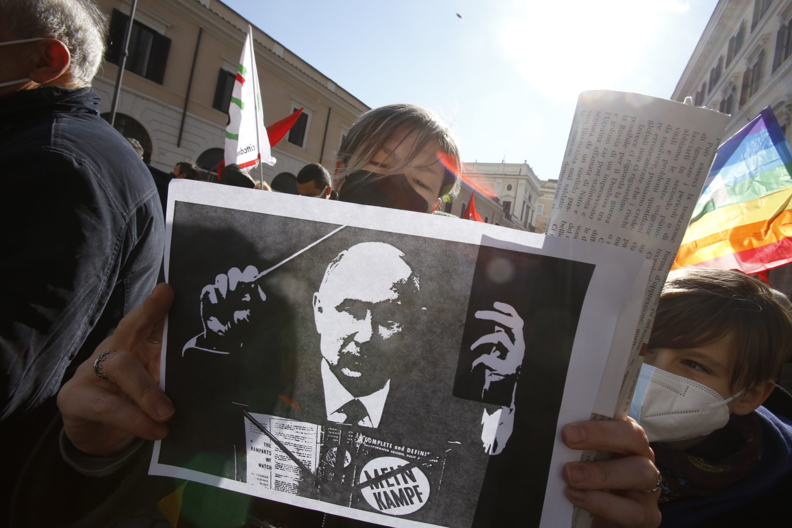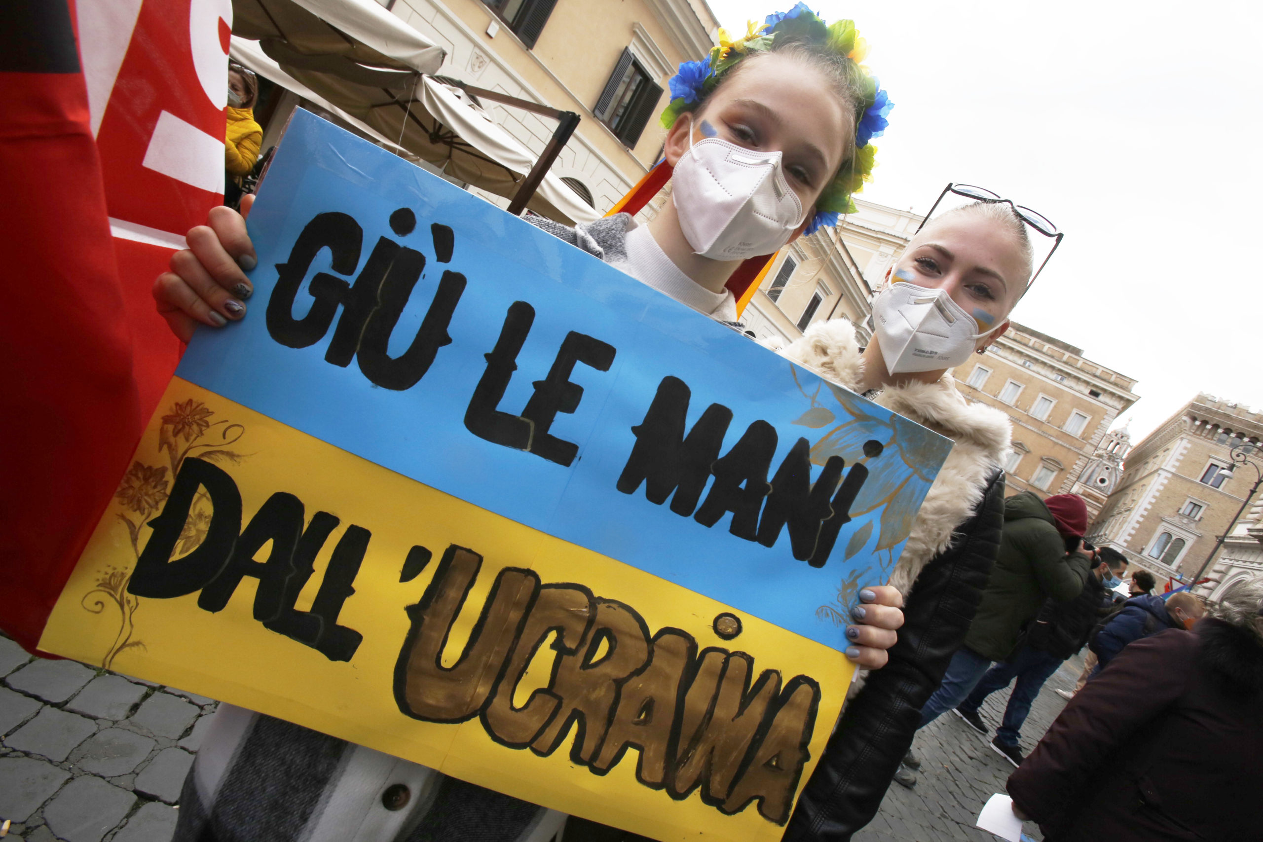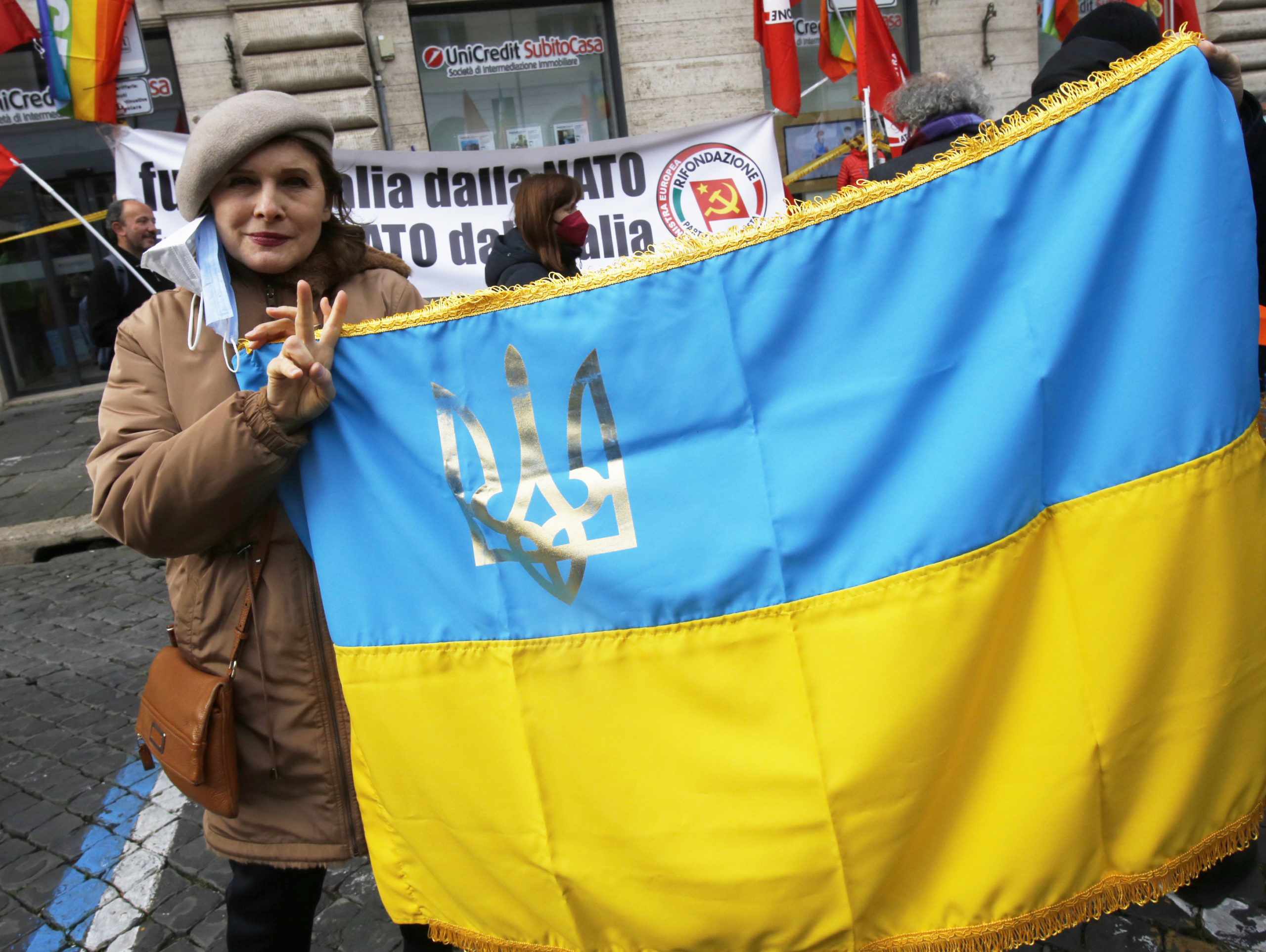 Roma, le foto della manifestazione per la pace in Piazza Santi Apostoli: “Giù le mani dall’Ucraina”