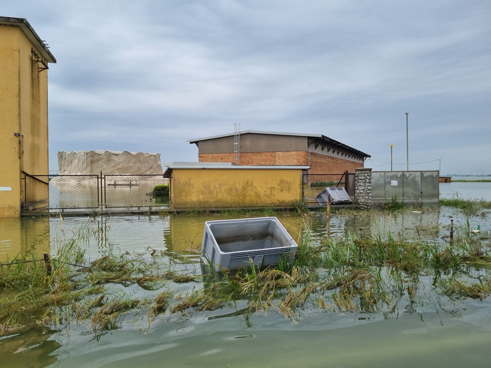 L’esondazione del fiume Savio, così come dimostrano le immagini raccolte da Maurizio Tarantino per TPI, ha ricoperto d’acqua gli 827 ettari di superficie delle saline mettendo a rischio la produzione del pregiatissimo sale che ogni anno per tradizione viene donato anche al Papa.