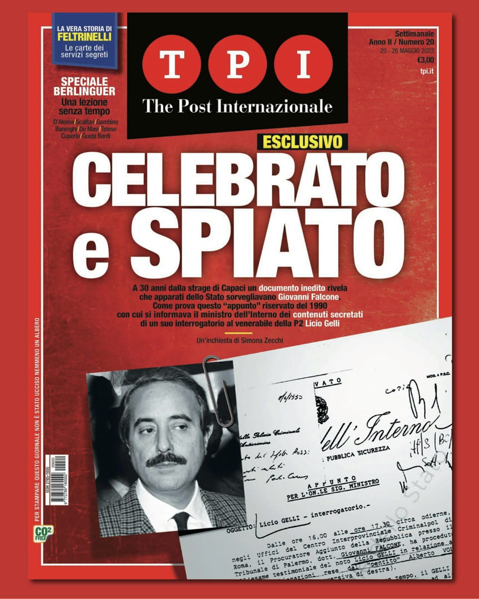 Celebrato e spiato: a 30 anni dalla strage di Capaci un documento inedito rivela che apparati dello Stato sorvegliavano Giovanni Falcone. Come prova questo “appunto” riservato del 1990 con cui si informava il ministro dell’Interno dei contenuti secretati di un suo interrogatorio al venerabile della Pd Licio Gelli.