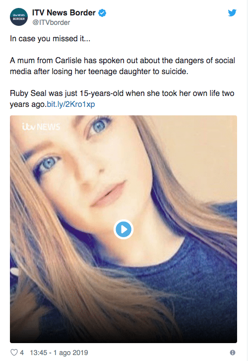 “Ruby da bambina era divertente, intelligente, spiritosa – ha raccontato Julie, la mamma, – poi le cose sono cambiate quando è cresciuta. Ha cominciato ad aver paura di non piacere alla gente e queste insicurezze hanno preso sempre più piede con l’uso dei social. È facile dire “togli il telefono a tua figlia”, ma non è così facile. Anche le piattaforme dei social devono assumersi le loro responsabilità. Nessun bambino deve perdere la vita perché ha preferito vivere in una vita virtuale e non in quella reale”.