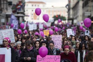 Un momento della manifestazione nazionale contro la violenza sulle donne, Roma, 25 novembre 2017. ANSA/ANGELO CARCONI