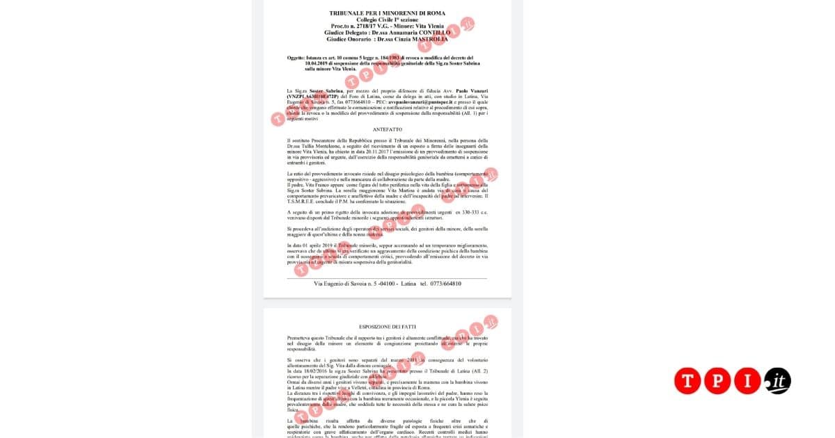 Succede a Priverno, un paesino in provincia di Latina. E quella di Ylenia, 10 anni, è una delle tante storie di famiglie spezzate, di bambini allontanati da casa e finiti all’interno delle comunità. “Non mi spaventa più niente, vado avanti a oltranza, finché la mia bambina non tornerà da me”, racconta a TPI la madre della piccola Ylenia, ora all’interno del centro per minori Ipab Baratta.