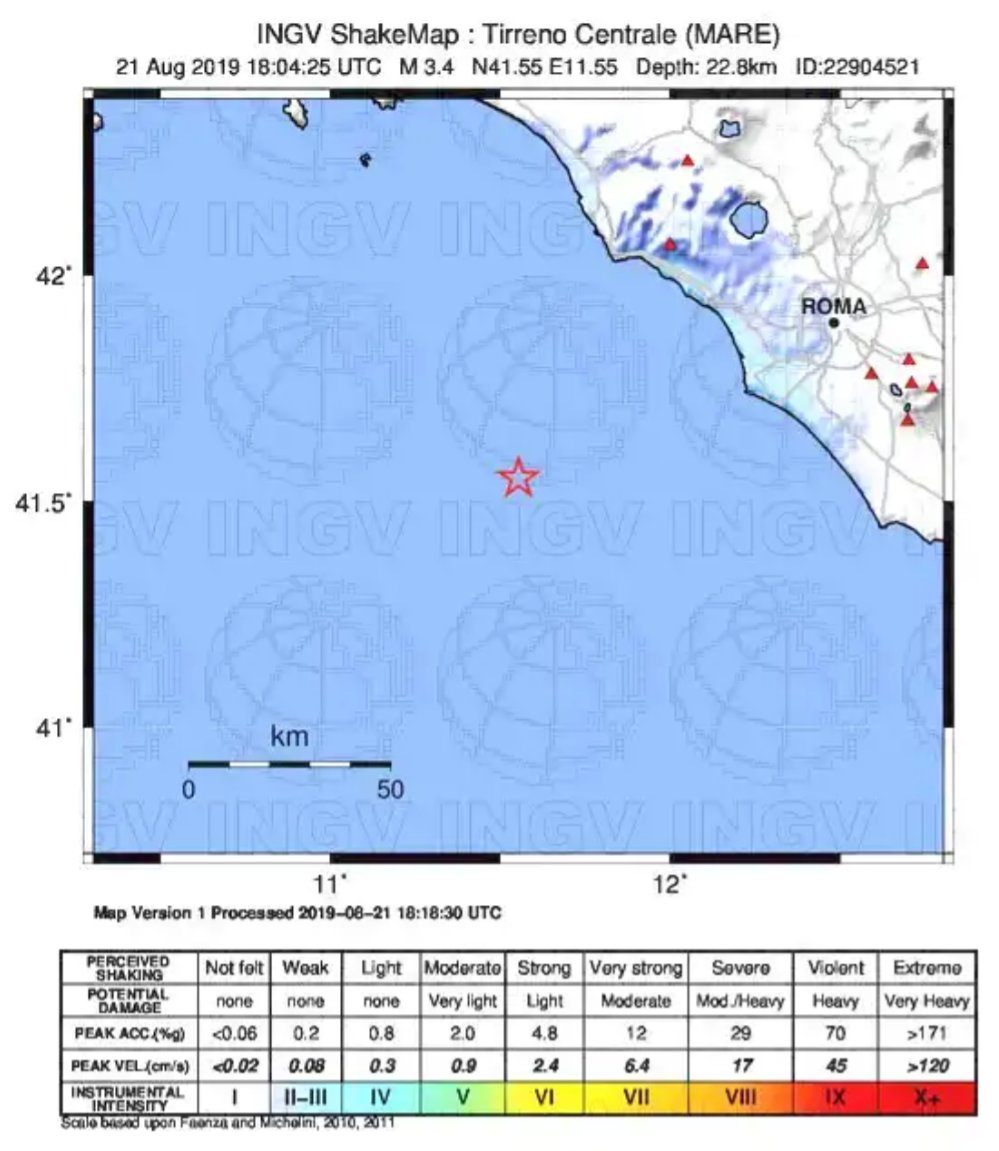 Un terremoto si è sentito oggi 21 agosto 2019 vicino Roma.