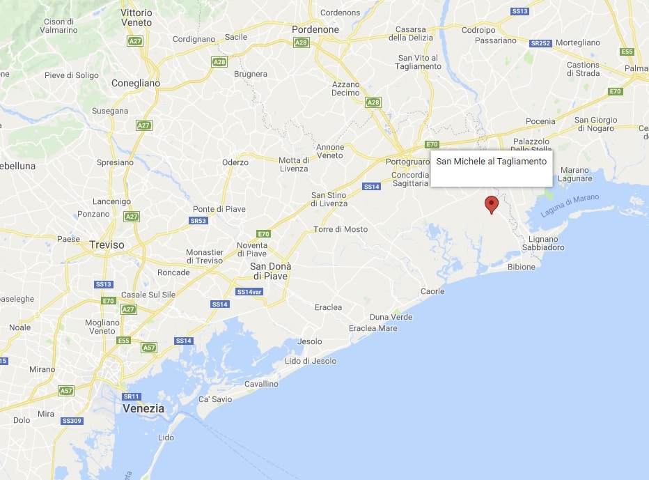 Ecco una mappa della zona dell’incidente con indicazione del territorio di San Michele al Tagliamento e della frazione Bibione: