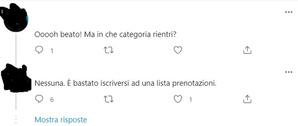 Tantissime anche le testimonianze online, ma Radio Popolare ha seguito la procedura arrivando fino alla somministrazione (il giornalista ha rifiutato il vaccino all’ultimo, ndr) per verificare la veridicità della notizia. Alla fine la prenotazione è stata approvata senza nessun controllo. Nel modulo da compilare prima della vaccinazione al soggetto veniva chiesto di inserire solo nome, cognome e codice fiscale. Nessuna indicazione della categoria che ha la precedenza.