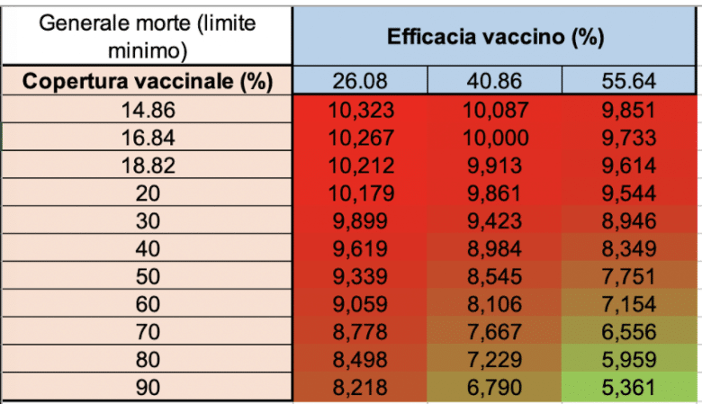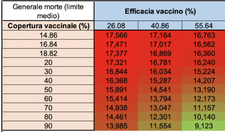 Incrociando i dati disponibili da Epicentro e Ministero della Salute è possibile stimare un numero di morti per influenza dai 7000 ai 17.000 ogni anno. Approssimando a 10.000 morti è possibile stimare (con una copertura vaccinale del 80 o 90 per cento), un dimezzamento del numero di morti (tra 5959 e 5361), e stimando una mortalità annuale di 17.000 pazienti, il numero di morti in condizioni di copertura vaccinale massima potrebbe arrivare a 9123.